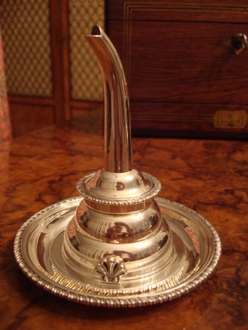 London 2004 English hallmarked solid silver excellent quality wine funnel and stand, beautifully crafted in the Georgian style from heavy gauge silver and having a heavy weight of silver.