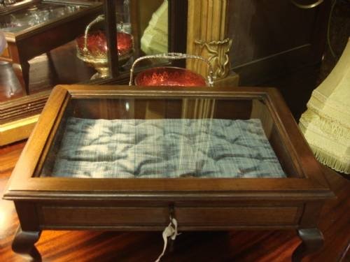 Panelled sides, rising glass lid, and beautifully curved cabriole legs make this a very stylish box to display important collectables or jewellery.