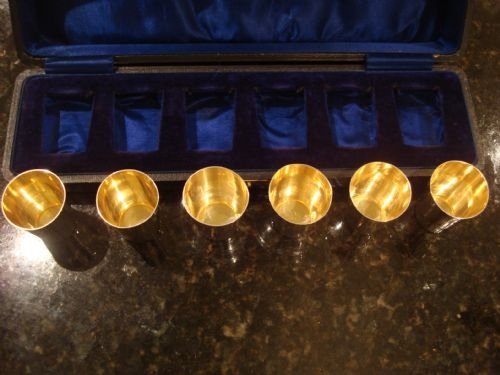 Another stemmed set of six solid silver liqueur tots is also available if you wish. See listings under drinking requisites category.